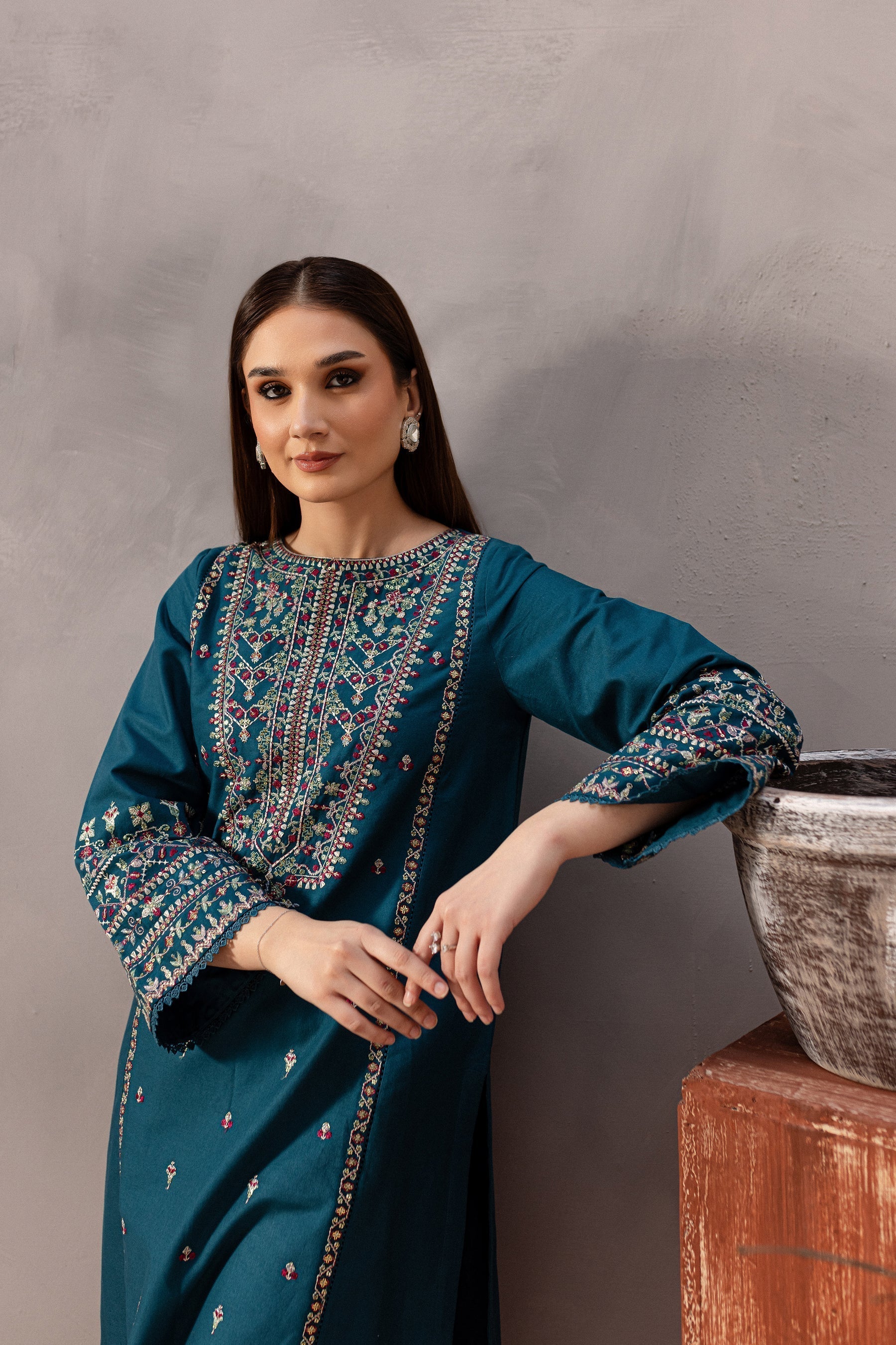 - Lawn Sequin Embroidered Sleeves